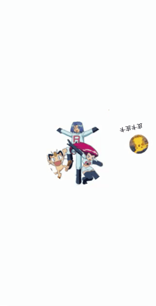 皮卡丘一边叫着“皮卡皮卡”一边自转,然后绕着火箭队公转(小智:喵喵喵???)